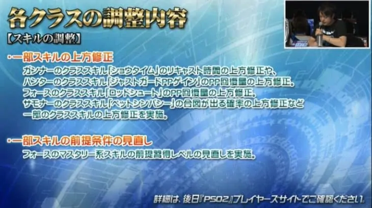 ・ショウタイムのリキャスト、ジャストガードPPゲインのPP回復量、ロッドシュートのPP回復量、ペットシンパシーの合図が出る確率など上方+一部のクラススキル上方