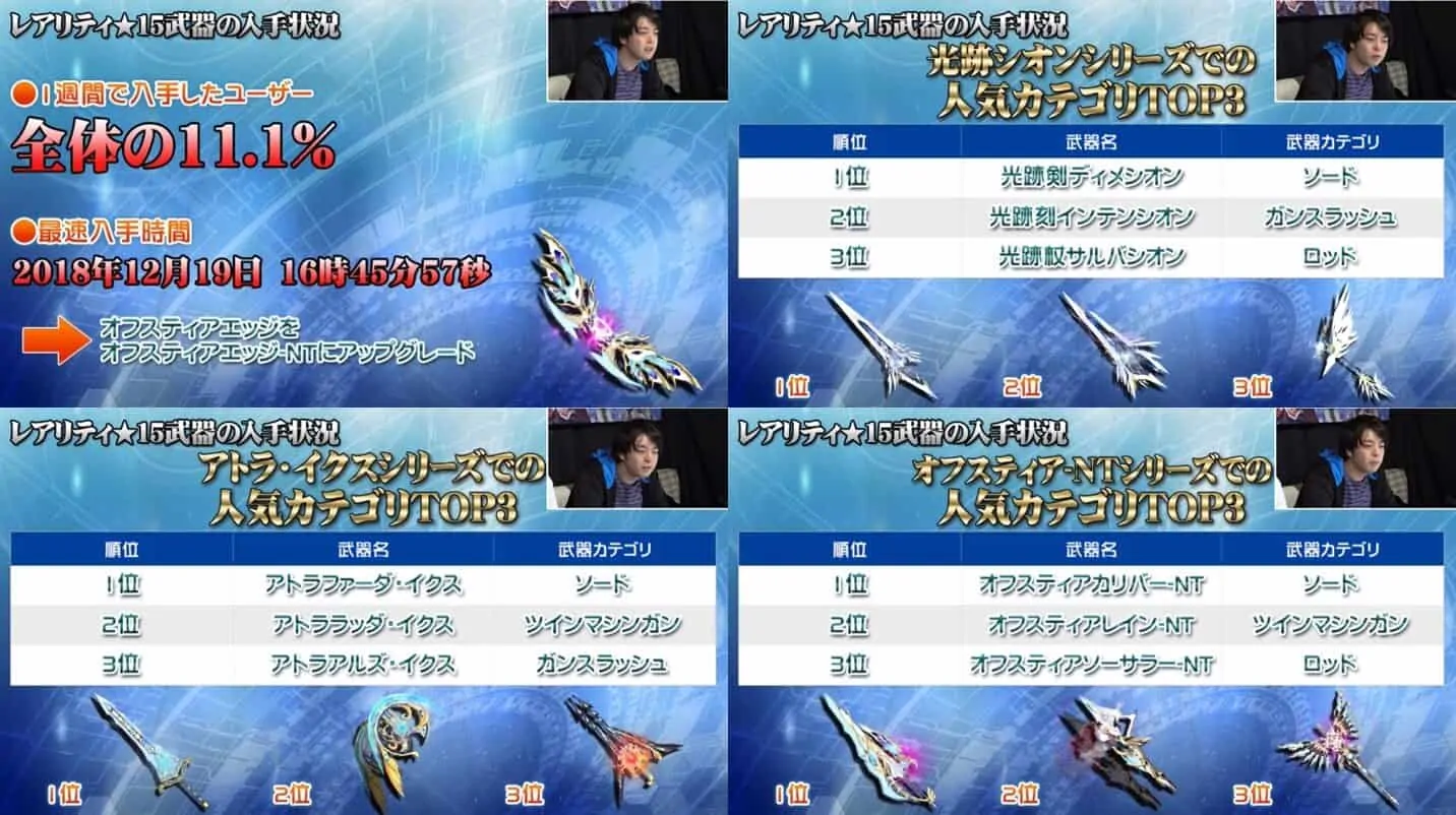 - 各武器でソードが1位。あとはTMGやガンスラ、ロッド