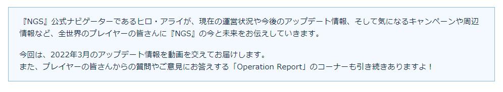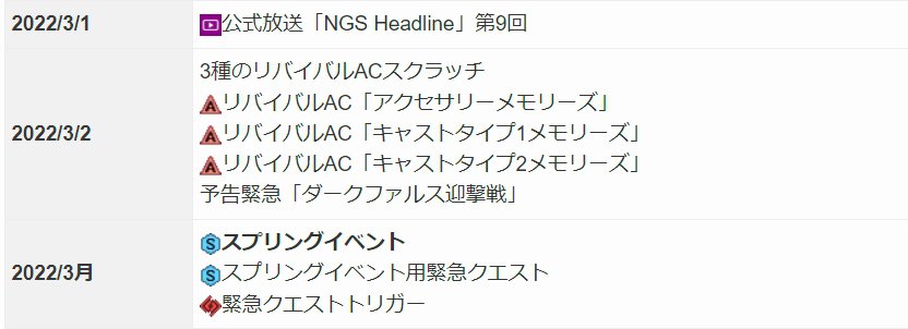3/1(火)21時のNGSヘッドライン放送にて2月のアップデート詳細が出る予定