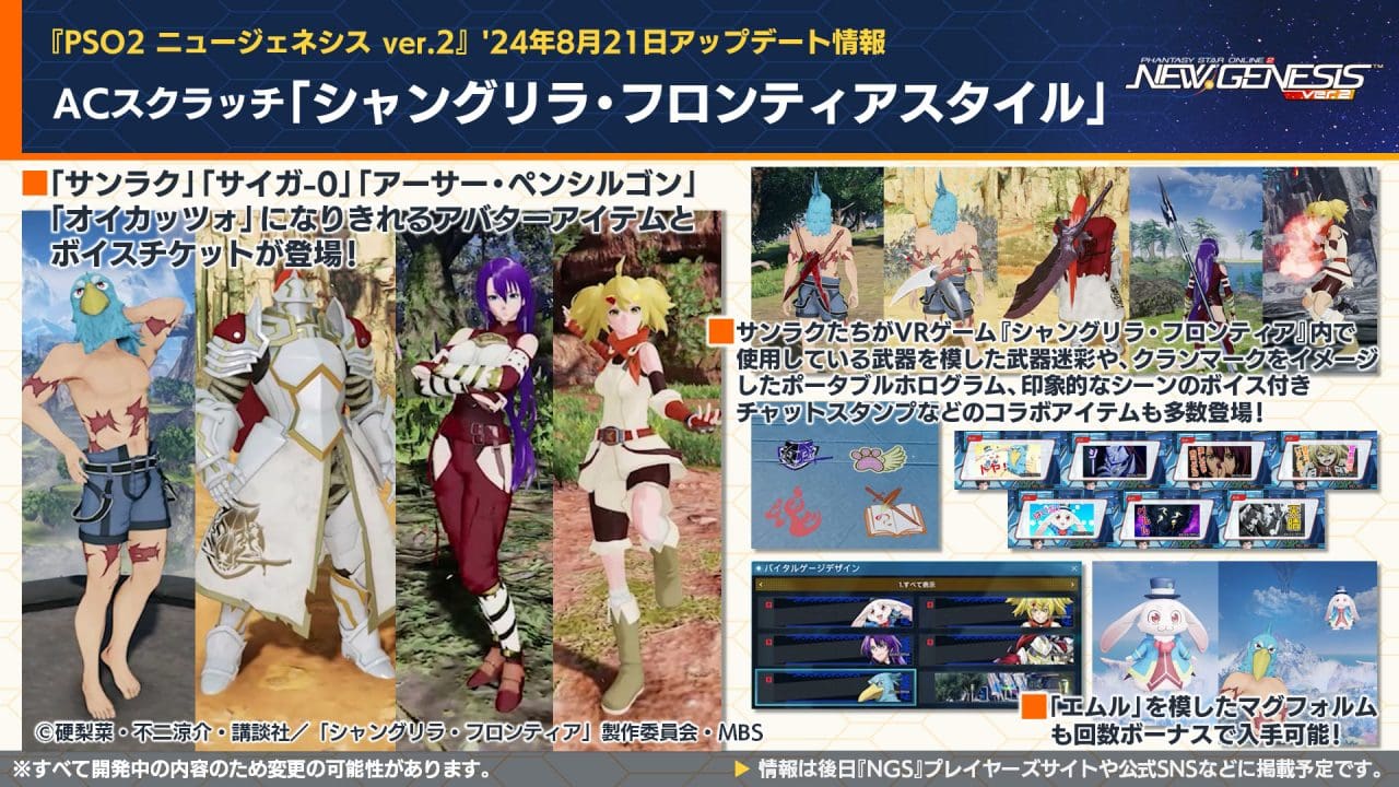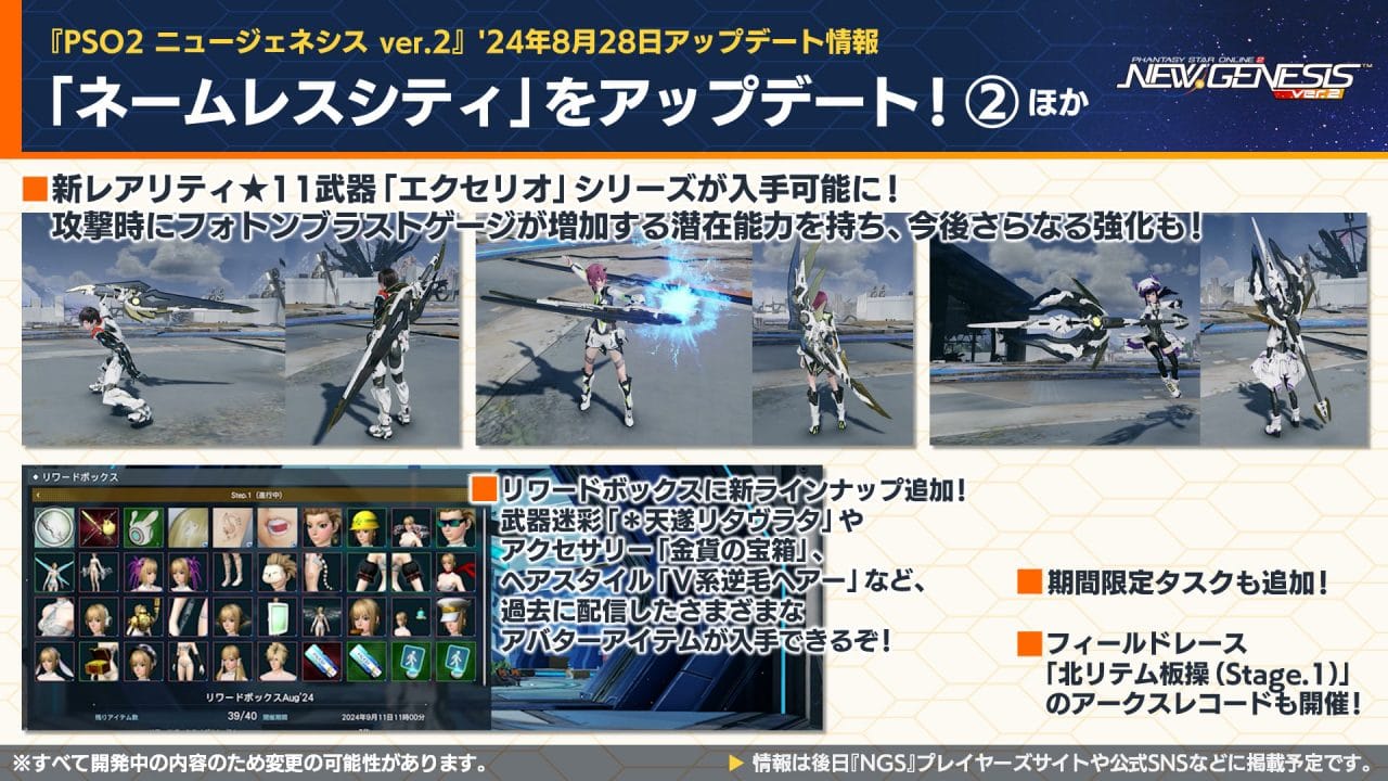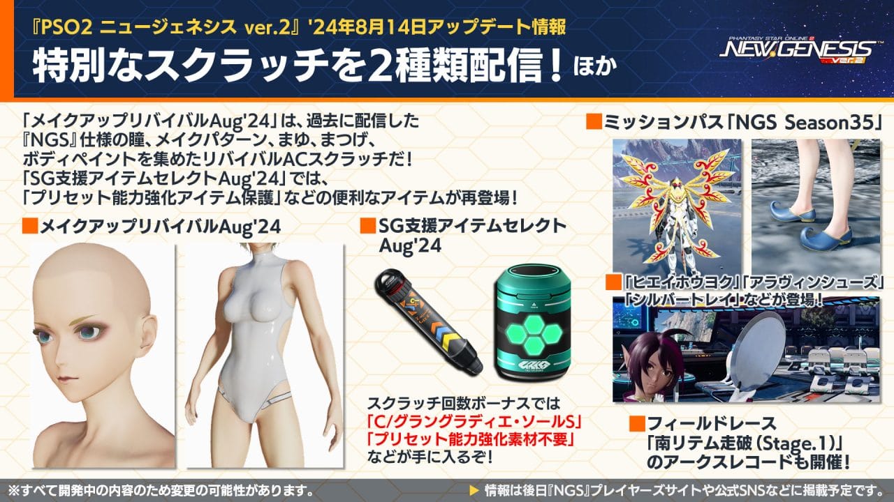 今月も高速のまとめおつさまです!8月は装備方面でいろいろ楽しめそうですねえ(^^)特にスクラッチ関連は「シャンフロ」は言わずもがな、この時期に旧のスマートインナーっぽいものが実装されるとゆーことは・・・さらにフォトンの吸収がよさそうなBaウェアがくる!?さらにさらに先月のVパンに続き競泳水着だと・・・運営がクリスペに「例のプール」作れってゆーこ( ‘ ^’c彡))Д´)パーン 最後に今後の装備更新は「進化する装備」と「通常装備=季節限定武器」って感じになるんかな?もう強化素材集めそんな頑張らないでええんかな。。。