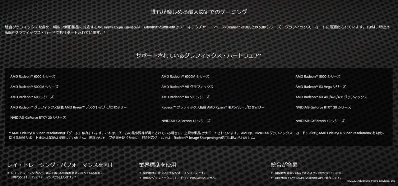 AMD FSRはMITライセンスでオープンソース公開されてるソフトウエアで行うフレームレート改善機能