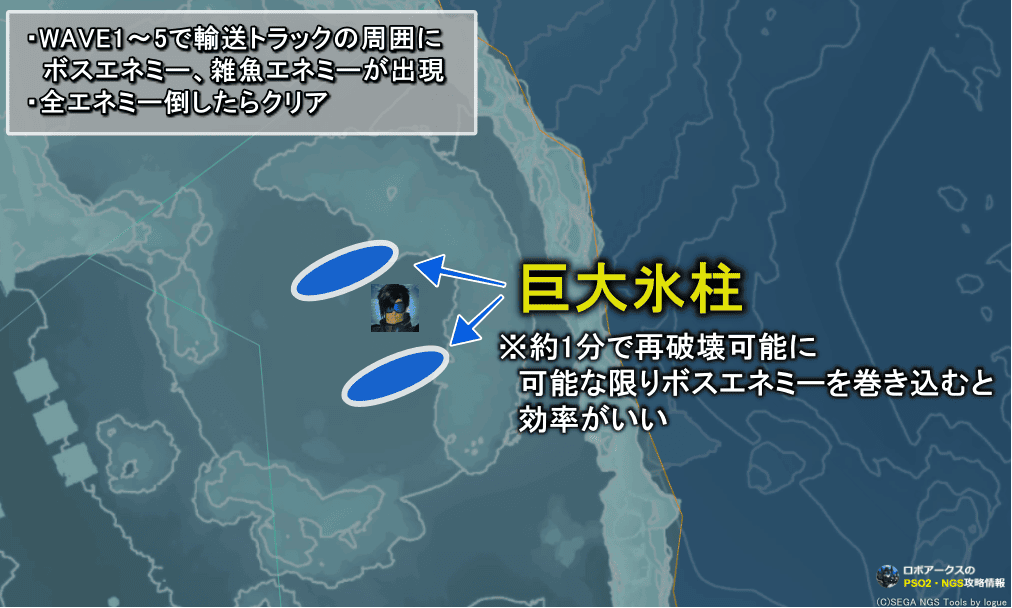 全WAVE共通巨大氷柱が2か所設置。WAVEごとではなく、破壊後にそれぞれ1分後に再破壊可能