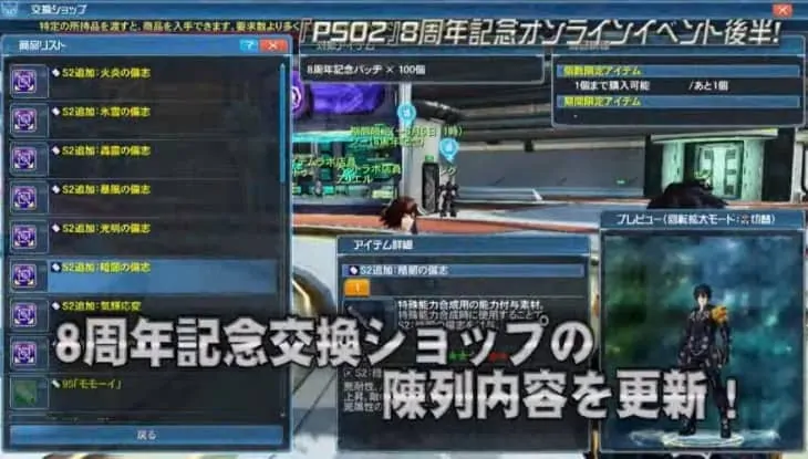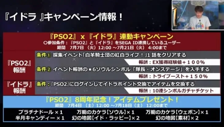 キーワードは「PSO2祝8周年」。23時からです、入力忘れずに